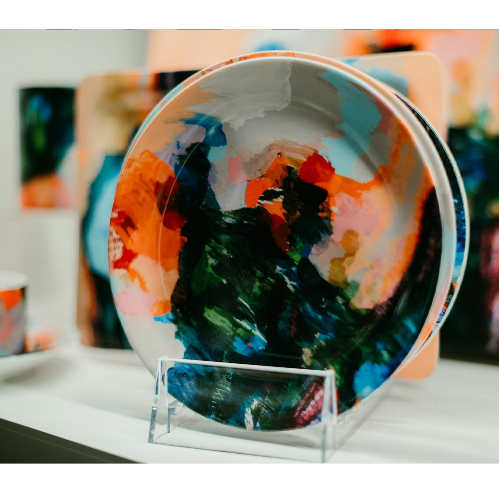 Each plate is handmade to order and printed with a specialist method that ensures a clear and colourful, long-lasting finish. The colours in our design are depicted in all their vintage maximalist glory, with boldness and definition. Designs are printed onto the front of the plate, while the back is kept clean and neutral; the perfect contrast.