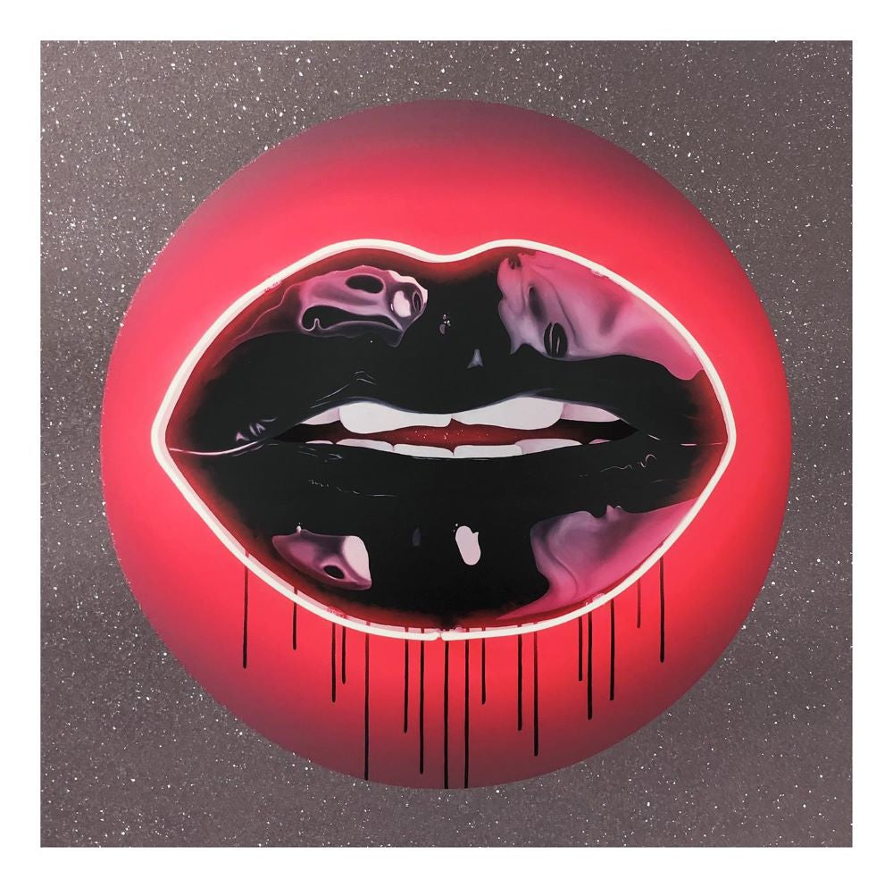Contemporary artist Sara Pope is reknown for her bold, seductive paintings of voluptuous lips. Taking inspiration from Haute Couture fashion and beauty trends, Sara captures the glamour and power conveyed by the lips and mouth, raising questions about ideals of beauty and femininity.