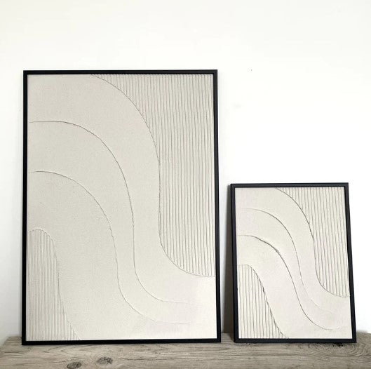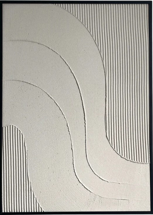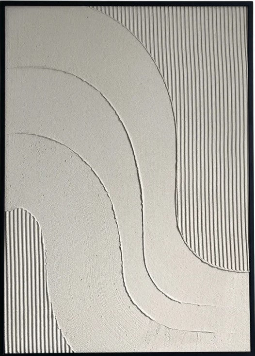 Framed textured 'wave' design 3d artwork, plaster on wooden panel